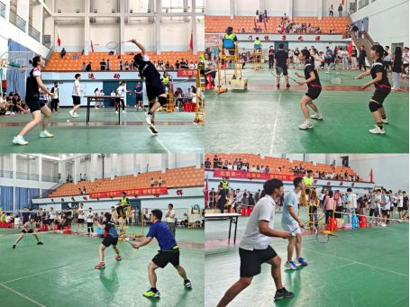 本次大赛设定采用三局两胜11分制,包括女子双打、男子双打、混合双打三个项目。上午8点,比赛在大家的欢呼雀跃声中拉开了序幕。选手们穿着轻便的运动装,斗志昂扬,活跃在各个赛场。只见羽毛球你来我往,让人目不暇接;加油声此起彼伏,赛场热闹非凡。经过一上午的激烈角逐,我院在小组循环赛中以绝对优势在五个学院中排名第一,脱颖而出,成功晋级八强赛。