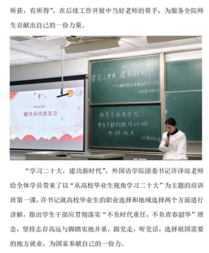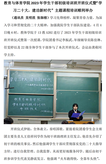 我院2023年学生干部初级培训班开班仪式暨“学习二十大,建功新时代”主题课程培训顺利举办