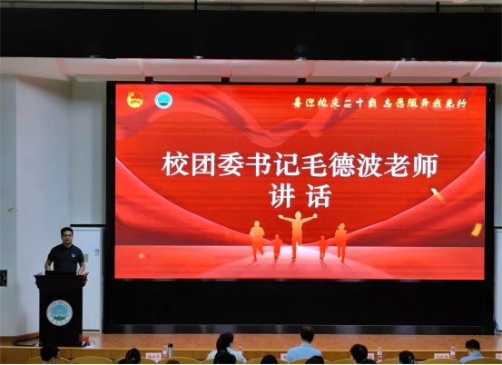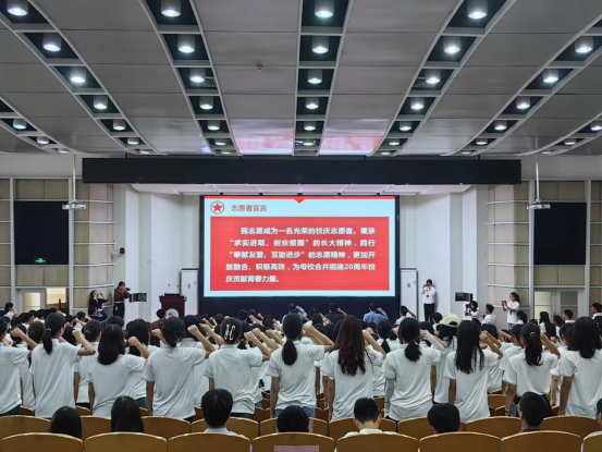 最后,校团委书记毛德波老师提出三个新要求:争担当、练本领、真感情。回顾选拔、培训志愿者的过程,我们发现志愿者的身影已到达各个地方,志愿红已成为大街小巷最亮丽的风景线。萤烛末光,增辉日月。一份甜美的微笑,一句暖心的问候都成为点点微光,彰显学校的文明与温度,让志愿精神成为时代新风。本次动员大会在志愿者们的宣誓中落下帷幕,一声声激昂慷慨的宣誓,既是志愿者们的决心,也是他们对长大送上的最真挚的祝福。