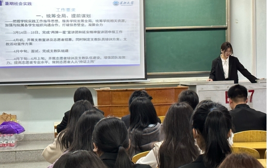 接着,指导老师任雯婷发表了讲话。她提出在新学期中要紧紧围绕学院文化特色品牌创建开展工作,增强系统性、创造性、实效性,切实把各项工作落细落实,推进志愿服务项目化、品牌化、长效化,进一步扩大影响力。