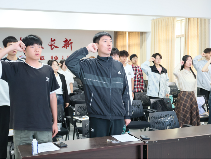在领誓员罗茵馨的带领下,新团员右手握拳庄严宣誓,誓言字字千钧,彰显出青年们对共产主义事业的坚定信仰与奋斗决心。随后,新团员们宣读并学习《团章》,这让他们更加了解共青团的性质以及团员义务和权利。