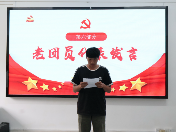 仪式接近尾声,张震洋老师对本次入团仪式进行了总结,对新团员提出四点希望和要求,期待新团员们成为有理想、有品德、有本领、有韧性的新时代青年,在集体中发光发热,在志愿服务、社会实践中展现青春风采。