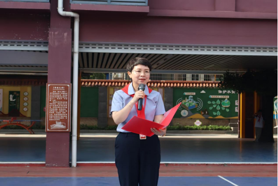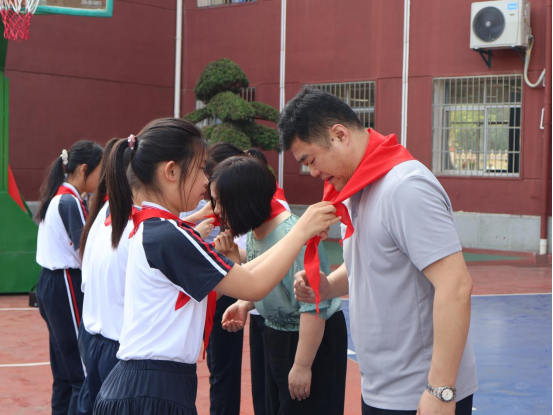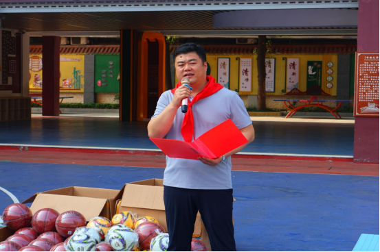 洪垸小学以少先队最高礼仪表达对长江大学老师们的敬意,为到场嘉宾敬献红领巾,周芳校长致辞:“这批体育器材将极大丰富我校教学资源,为孩子们提供更多锻炼机会,助力体质提升与全面发展。”