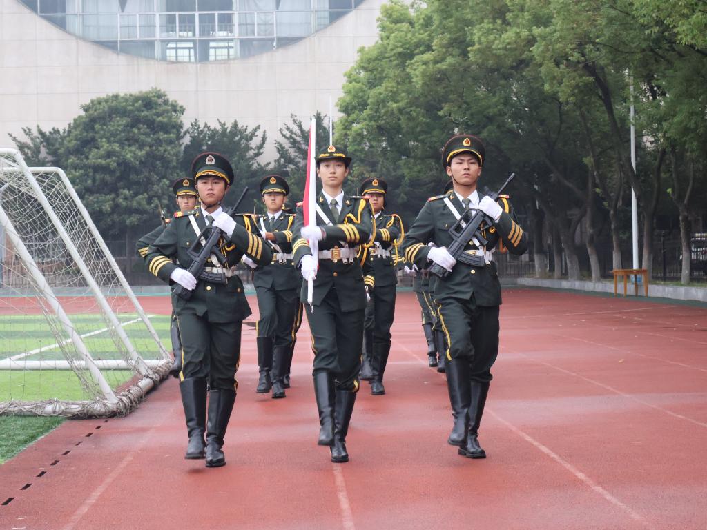 仪式上,国旗护卫队步伐铿锵,护送五星红旗入场。7时整,伴随着雄壮的《义勇军进行曲》,全体师生庄严肃立,行注目礼,鲜艳的五星红旗冉冉升起,爱国之情在师生心中激荡。