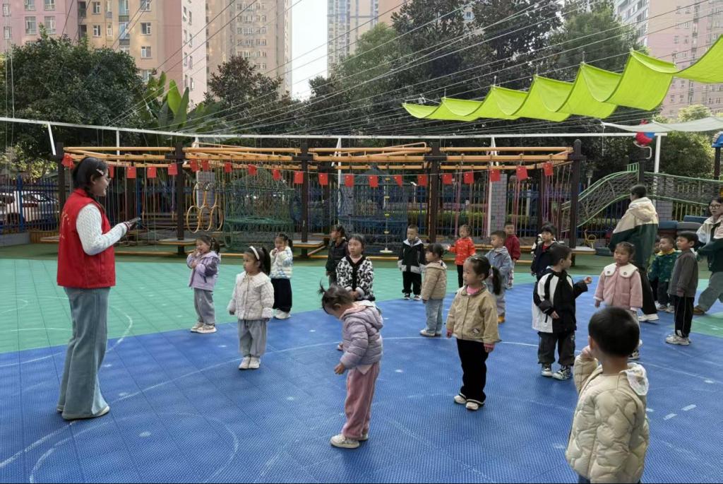 随后,志愿者先带领小朋友们进行了充满趣味性互动的热身游戏,为后续的运动筑牢安全基础。热身结束后,志愿者们进行了游戏示范,在小朋友们理解之后,正式开始游戏。