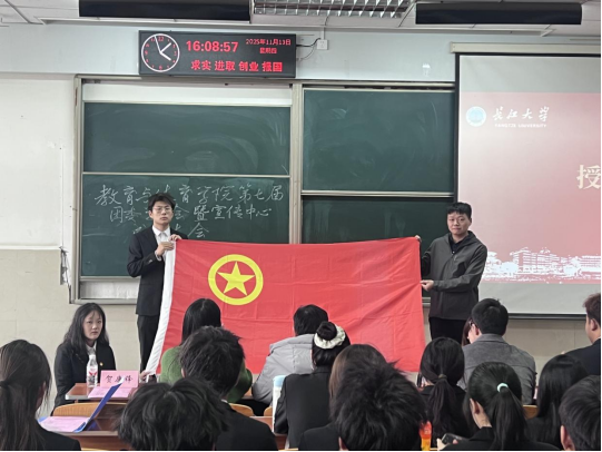 在庄重的氛围中,辅导员高恒向团委学生会代表授旗。这面旗帜不仅代表着荣誉,更象征着工作责任的正式交接。接过旗帜的那一刻,新一届团委学生会、宣传中心成员们深感责任重大,使命光荣,他们将以更加饱满的热情和更加严谨的态度投入到工作中去。