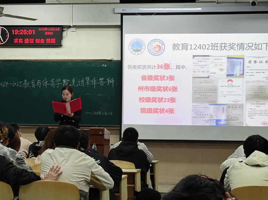 随后,进入答辩环节:标兵寝室代表通过 PPT分享互帮互助故事、展示整洁内务。有的坚持每日自习打卡,有的定期组织团建,有的积极参与志愿服务,五分钟展示浓缩了寝室生活的温度与深度;先进班集体代表从制度建设、思想引领、学风营造等维度汇报,有的建立学业帮扶机制追求 “零挂科、多获奖”,有的通过主题团日活动强化青年使命感,有的在文体赛事中屡获佳绩,展现强大凝聚力。