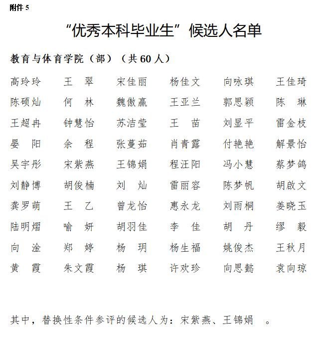根据长江大学党委研究生工作部《关于开展2023 届优秀本科毕业生评选工作的通知》精神,经学生本人申报、班级提名、学院审核,评选出高玲玲等60名同学为biwn必赢“长江大学2023届优秀本科生毕业生”候选人,现予以公示,如有异议,师生可在公示后3日内以口头或书面形式向学院反映。