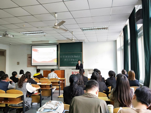 按照会议流程,首先是预备党员转正大会,由黄炼等6位预备党员依次宣读各自转正申请,随后,由6位预备党员各自的第一、第二入党介绍人宣读介绍意见并提出建议。王利方老师提到,预备党员转正,意味着要迎接更加巨大的挑战、肩负更大的责任,要始终牢记在入党时的初心,经过6位具有表决权的党员表决,6名预备党员全部转为中共正式党员。