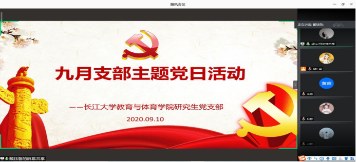 为了深入学习贯彻习近平总书记重要讲话及有关会议、文件精神,引导和激励广大教职工和广大党员立足岗位,奋发有为,促进学院新学期教育教学和疫情防控等工作顺利开展,9月10日下午,学院通过“腾讯会议”在线组织教职工开展了政治理论学习和9月“支部主题党日”活动。学习活动以支部为单位进行。