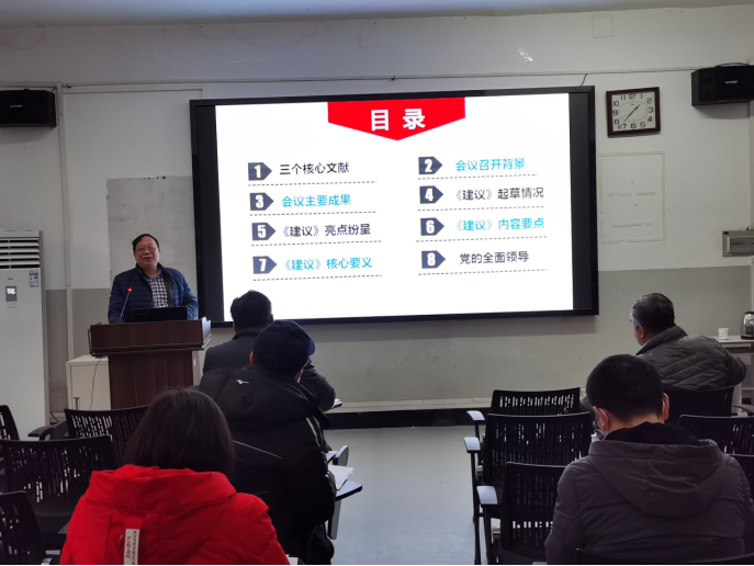 彭处长以《乘势而上开启全面建设社会主义现代化国家新征程》为题,精心解读了十九届五中全会的背景、成果、亮点、内容要点和核心要义,对与会人员全面准确理解十九届五中全会精神实质具有重要指导作用。