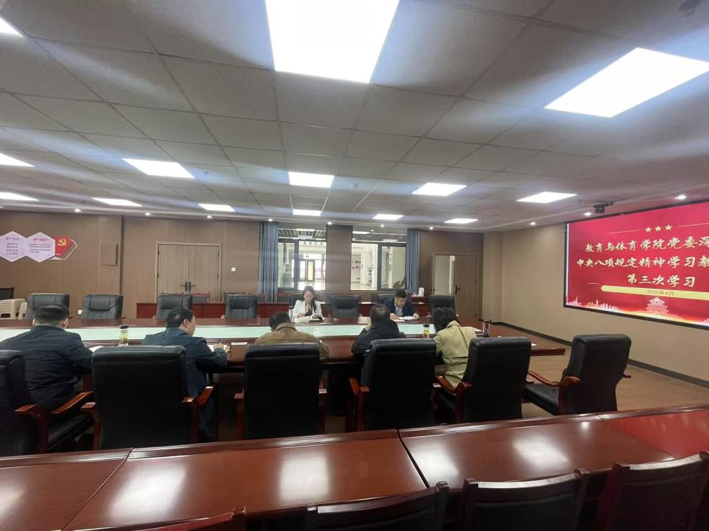 2025年4月3日上午,我院在文科大楼905会议室召开中央八项规定精神第三次集中学习。会议由我院党委书记于永伟主持,党委理论学习中心组全体成员参与本次学习。