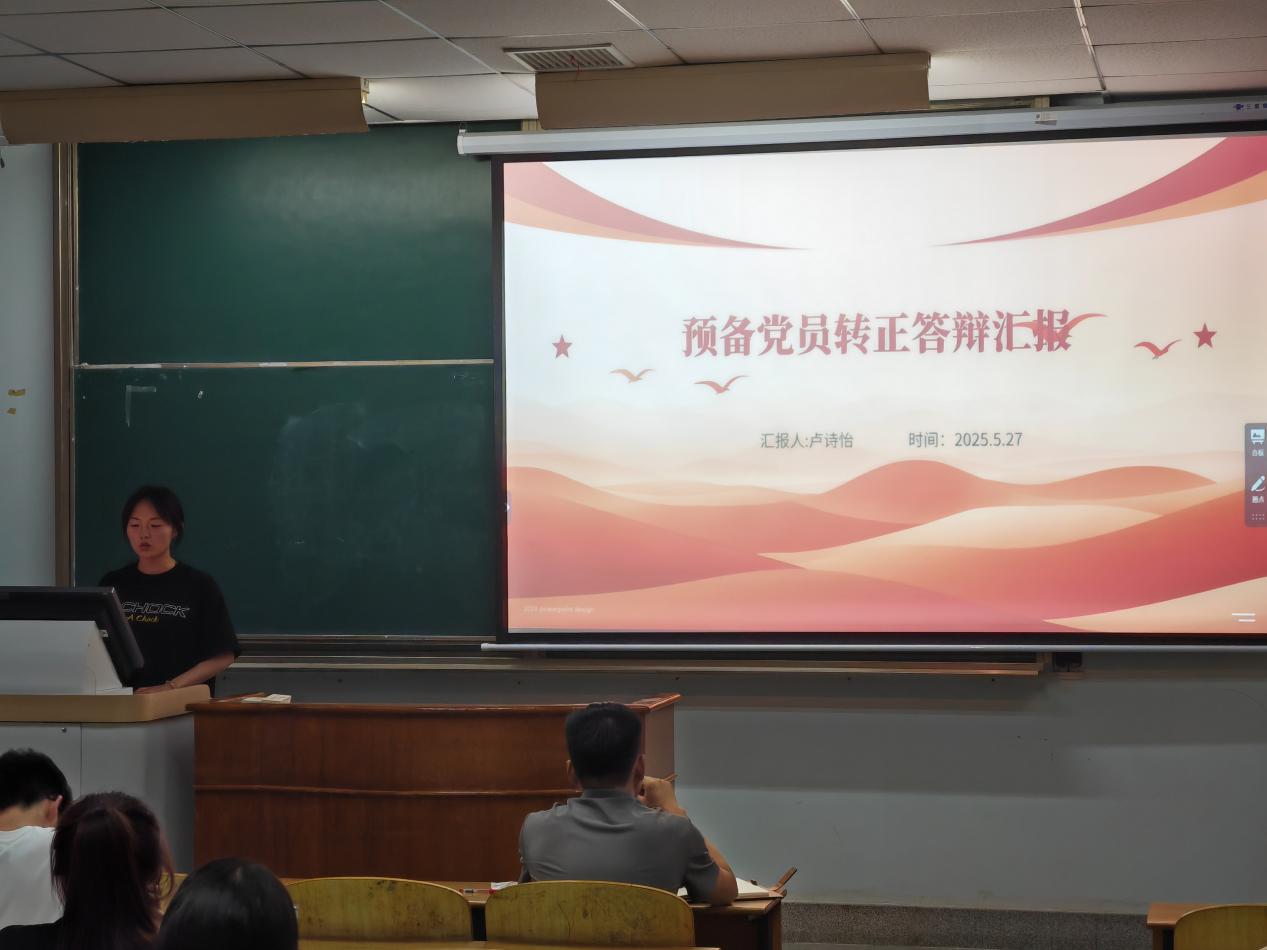 大会第一项议程为预备党员转正答辩汇报。此次转正的7名预备党员同志依次进行转正PPT答辩,做自我陈述,并宣读个人转正申请。经过入党介绍人宣读入党介绍意见,批评指正并提出建议后,由参会全体正式党员举手表决,7位预备党员均全票通过。最后,经支部讨论,史翔宇等7位同志按期转为中共正式党员。