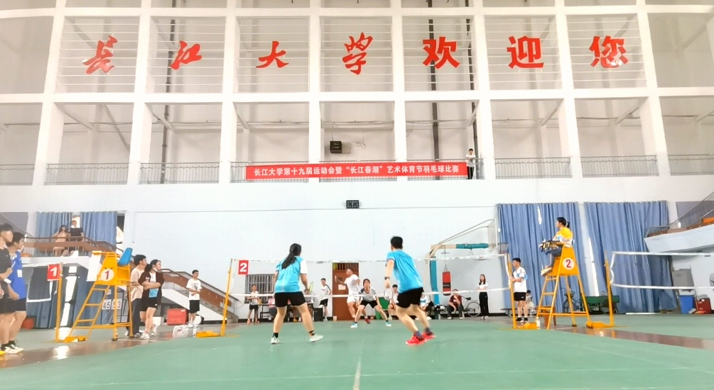 (通讯员 薛萌、牛保欣)为推动长江大学羽毛球运动的发展,加深各院(部)间的联系和交流,丰富大学生课余生活,激昂青春,增强体魄,提高羽毛球竞技水平,加强长江大学精神文明建设,形成艺术体育一把抓、物质精神双丰收的文体生态,长江大学第十九届运动会暨“长江春潮”艺术体育节羽毛球比赛于2022年5月7日至5月8日在长江大学东校区体育馆羽毛球场顺利举行。
