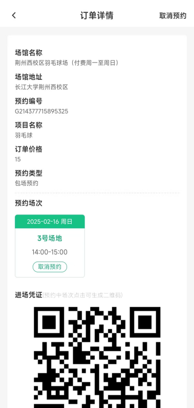 4.取消预约:预约后因个人原因无法到达准时到达场地,须提前在场馆预约界面右上角“我的预约”中找到已预约场地并主动取消预约。在规定时间内未到达场地缴纳费用管理员有权取消预约。爽约三次将进入黑名单,30天内无法预约。
