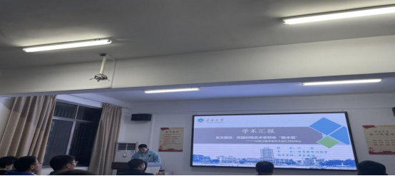 首先由来自体育教育训练学专业的江磊同学,他就“民国时期武术家群体国术观-以浙江国术游艺大会汇刊为中心”做了专题报告。他详细讲解其选题的背景,运用文本分析法,以国术家与武术家概念厘定与明国时期武术家群体的国术观两个方面为研究内容进行汇报。