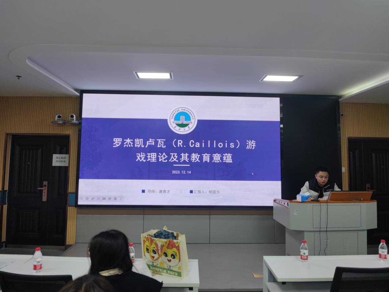 柏宜方同学汇报的主题是“罗杰凯卢瓦游戏理论及其教育意蕴”。柏宜方指出“学习化游戏”在几年后会从“最好有”到“必须有”,游戏丰富的形态是吸引学生投入学习,达到“寓教于乐”的效果。同时,柏宜方对“非教育性游戏”与“反教育性游戏”进行了区分。最后,柏宜方对凯卢瓦的游戏理论的不足进行了反思。