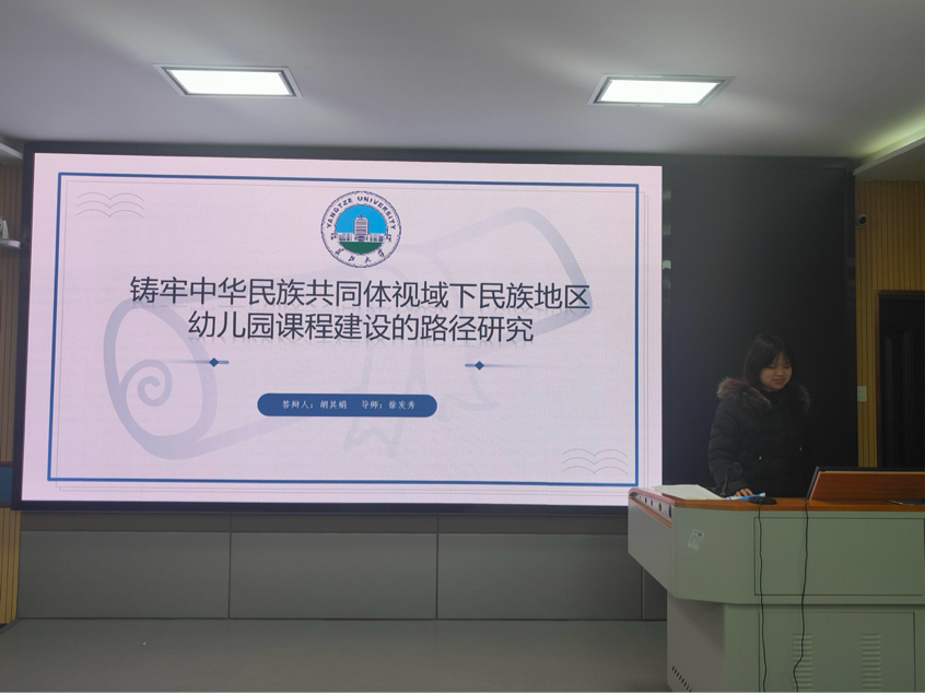 胡其娟汇报的主题是《铸牢中华民族共同体视域下民族地区幼儿园课程建设的路径研究》,她在论文中指出,中华民族共同体是中华民族走向伟大复兴的必由之路,作为中华共同体教育体系中的始发阶段,民族地区的幼儿园肩负着培养担当民族复兴大任时代新人的重任,提出以制度为保障、促进各平台合作、更新教育观念以及创新教师素养的路径来建设新时代符合中华民族的民族幼儿园课程。