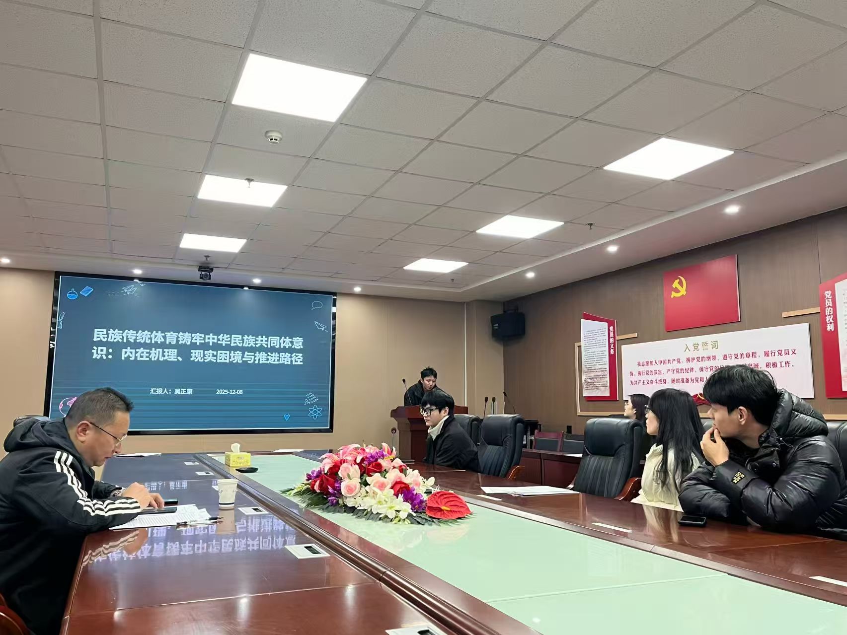(通讯员 罗光彩)2025年12月8日晚19:00,biwn必赢第七届研究生学术科技节研究生论坛第六场活动在文科楼905报告厅举行。本次汇报人是民族与传统体育学的研究生王小帅、王曼云、吴正康、昝俊浩、李思腾五位同学,张恒波老师出席了本场汇报。我院2024级、2025级民族与传统体育学专业的学生前来观摩学习,院研究生会张苑苑同学主持了本场活动。