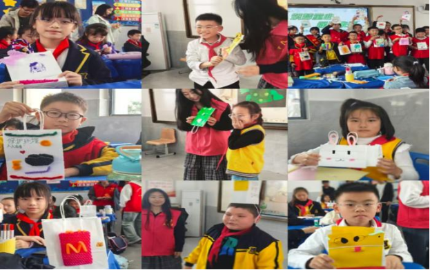 在温馨的氛围中,活动进行到了第二部分——手工制作。在志愿者们分发下材料后,小朋友们开动脑筋,用天马行空的想象力与创造力绘制了自己独一无二的纸袋作品。一时间,小兔、老虎、青蛙等可爱动物各展风采,各式各样的帽子、手提袋让人应接不暇。小朋友们积极向志愿者和同学们展示自己的作品,眼里满是自豪与喜悦,现场掌声雷动。