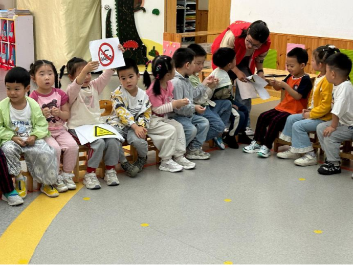 为了让防溺水安全知识更加深入人心,志愿者们精心设计了“安全标识配对”游戏。孩子们手持印有各种图案的卡片,与黑板上“禁止游泳”“水深危险”等标识对应匹配。整个游戏过程中,欢声笑语不断,小朋友们在愉快的氛围中轻松掌握了安全标识的含义。
